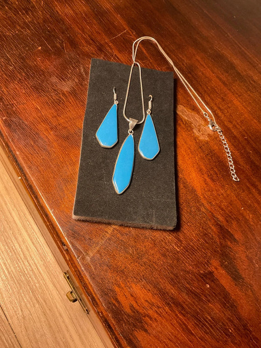 Blue Turquoise Earrings & Pendant Necklace Set – Elegant Stone Jewelry