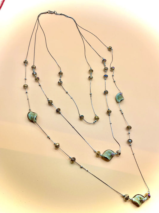 Boho Multi-Strand Beaded Necklace – Faceted Stones & Chain Layers
