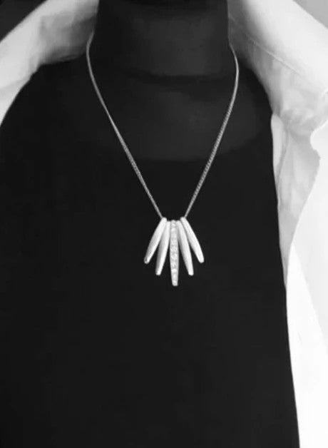 Chic Silver-Tone Bar Pendant Necklace with Sparkling Crystal Accents – Minimalist Jewelry for Women